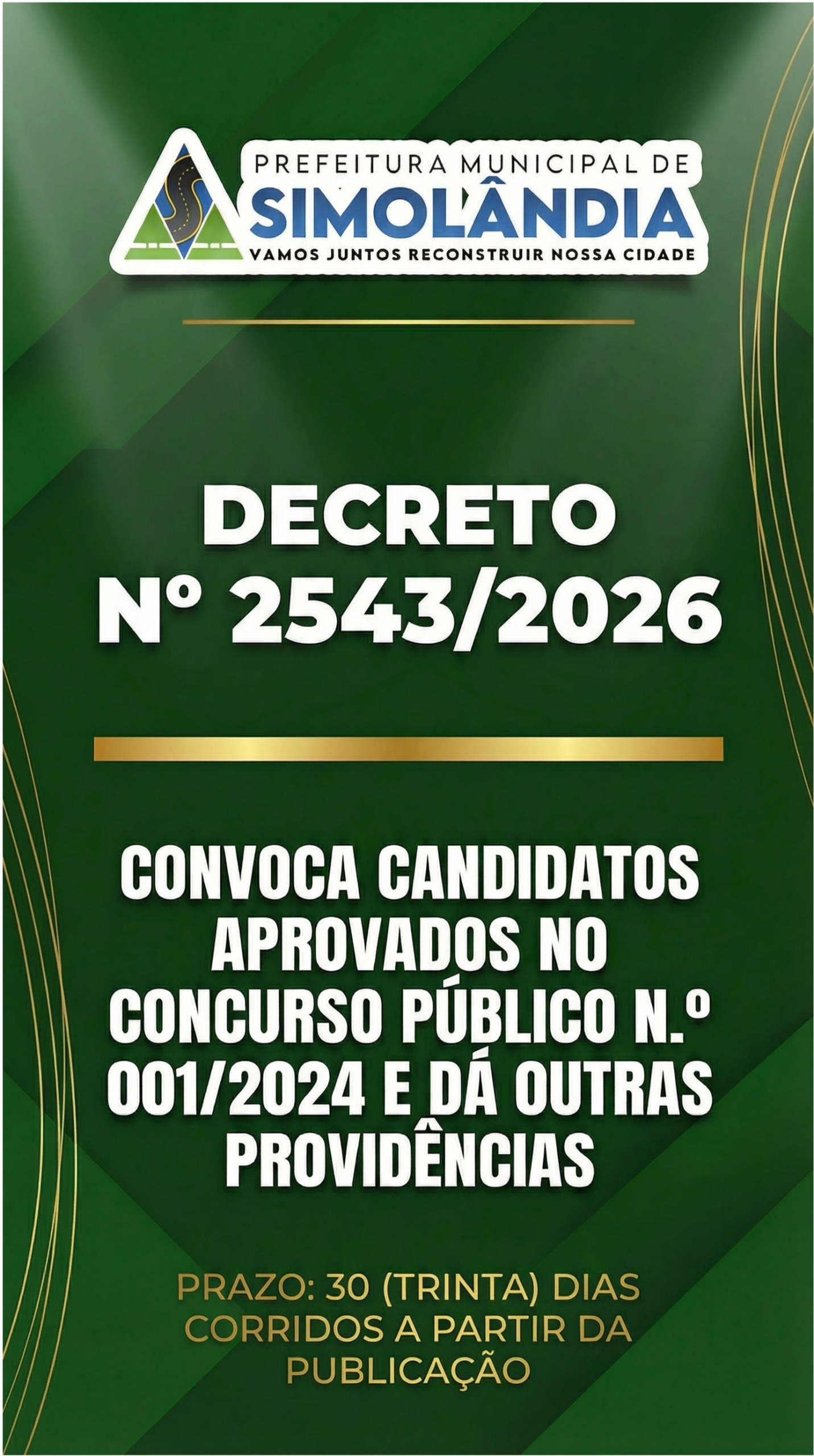 DECRETO 2543 CONVOCA CANDIDATOS APROVADOS NO CONCURSO PUBLICO N.001/2024 E DA OUTRAS PROVIDENCIAS